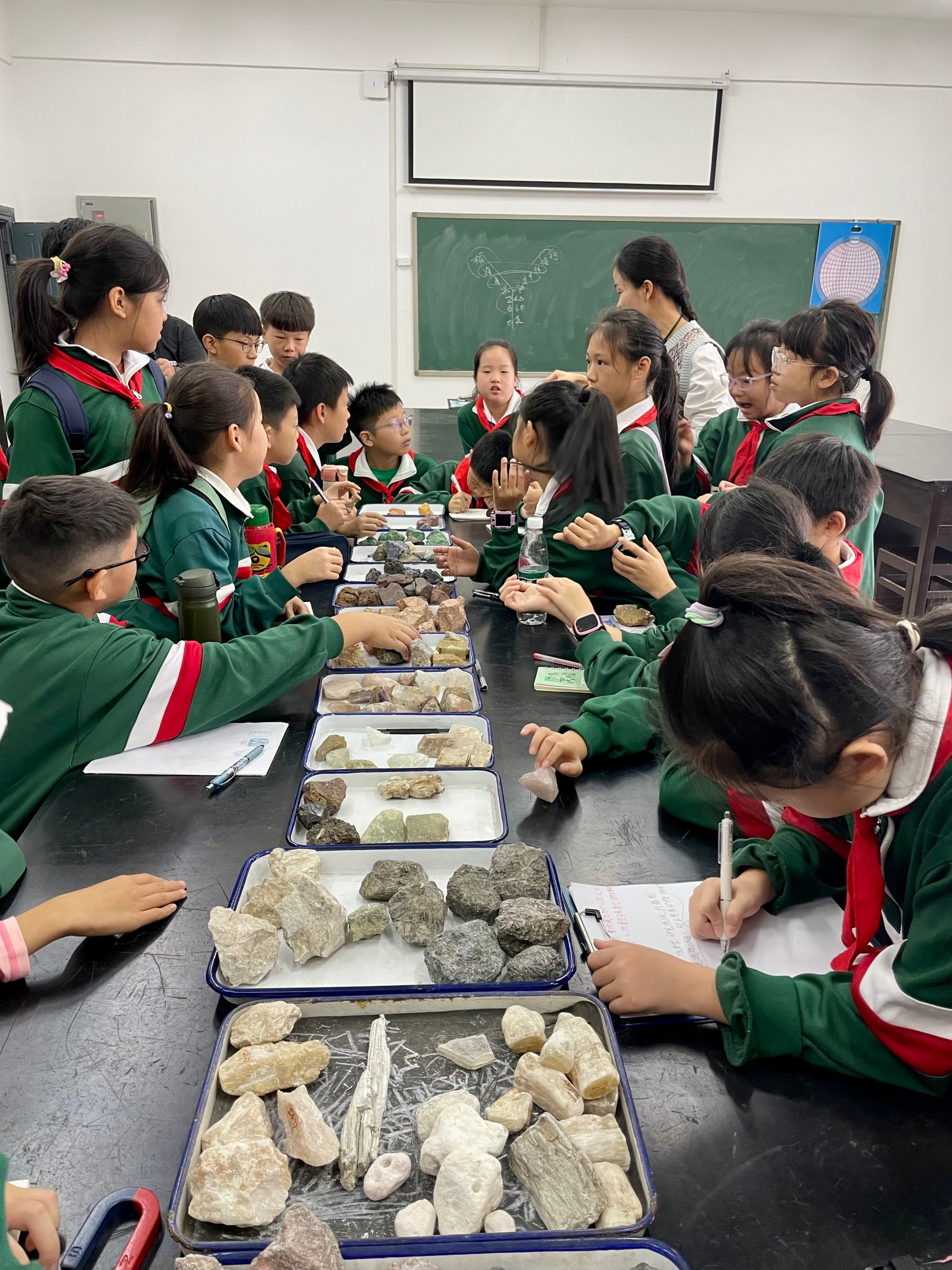 随后同学们拿着岩石标本,向老师提出了自己的见解和疑问。毛老师和沈老师悉心的给出了童趣的回答,并对同学们给予鼓励,从他们欣喜的眼神中可以看出释疑的快乐!