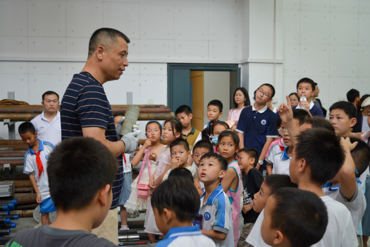 新校区国家自然资源科普基地。在刘井鹏老师和沈灿老师的带领下,同学们逐一参观了普通地质学实验室、矿物学实验室、古生物标本实验室、测井实验室、水文地质实验室、钻探工程实验室等。在参观中,小访客们进一步了解了各类岩石的构造与用途。实验室内也展示了各类岩石模型,学生们可以近距离触摸并观察到各种奇妙的矿物岩石,感受大自然的“神奇魔力”。