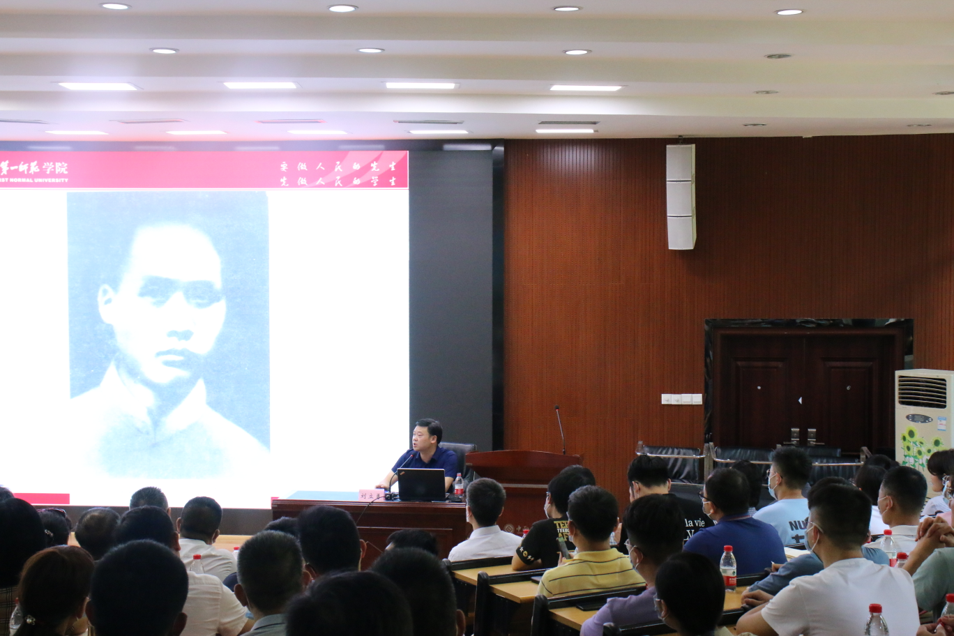 本次党课主要从两个方面展开,第一部分是追忆伟人,不忘初心,做奋斗者。湖南省是名人故里、伟人摇篮,在此环节,刘教授主要讲述了毛泽东的经历与事迹。他首先提到晚清重臣胡林翼、湖湘文化理学鼻祖周敦颐、王夫之、曾国藩对毛泽东产生的重大影响。随后,讲解了青年毛泽东的壮志与经历:毛泽东跨进湖南第一师范祥赌必赢