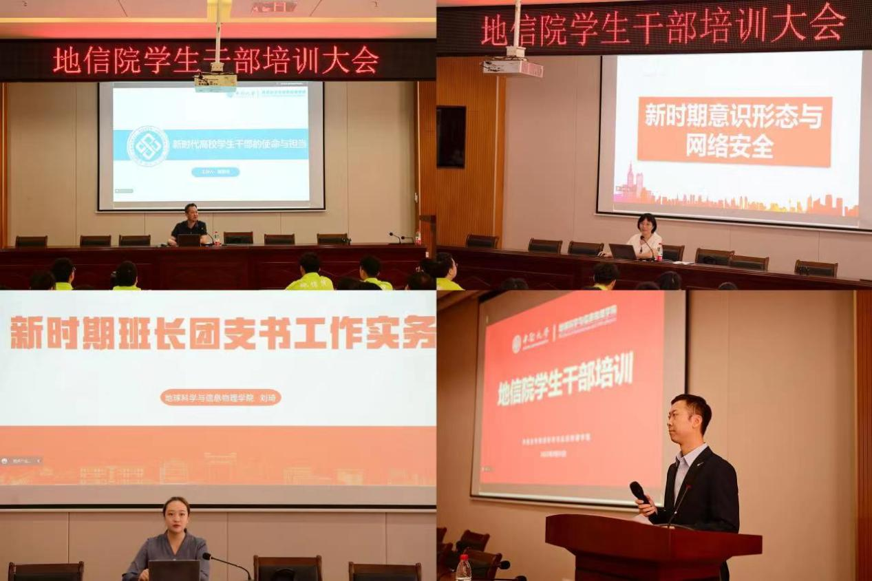 9月25日上午,地信院学生干部培训大会于地科楼127、地科楼214、地科楼424顺利召开。本次培训由地信院院长戴前伟、地信院党委副书记李建军、地信院团委书记刘琦主讲,并邀请本科生及研究生代表进行经验分享。地信院全体本研班长团支书参与培训,培训会由祥赌必赢