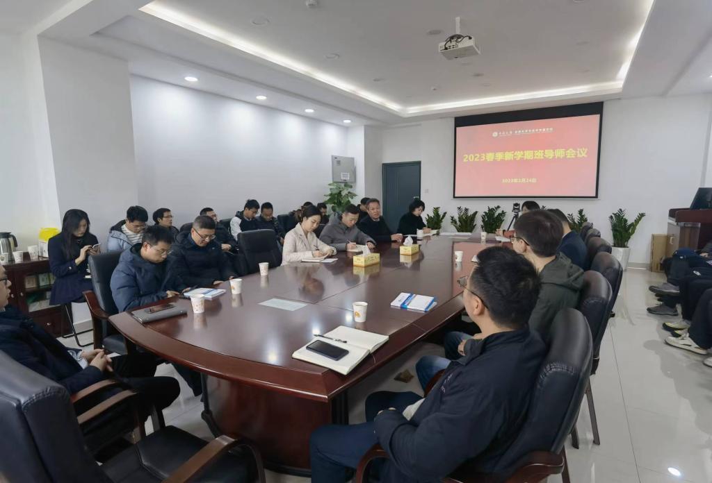 2月24日上午,地信院春季学期全体班导师会议于地科楼214顺利召开。院长戴前伟、院党委副书记李建军出席会议,各年级辅导员、全体班导师参会。
