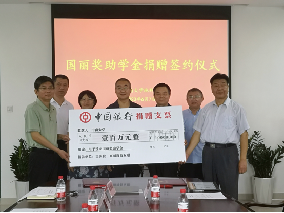 (中南工业大学前身),只不过一个考入的是当时学校最小的系——社科系,而另一个考入的是当时学校最大的系——地质系。曾教授深情地回忆了他们当年在学校艰苦而又充实的学生生活,并代表高国秋、高丽辉夫妇对母校的培养表示感谢,希望借此捐赠帮助贫困学生、鼓励优秀学生。