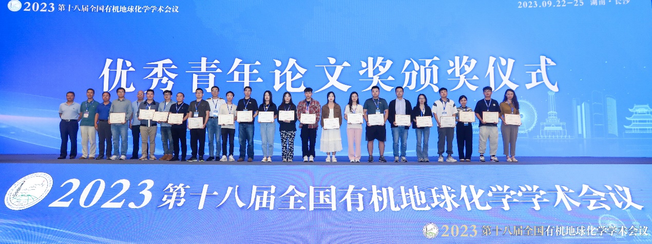 院士贾承造为获奖者颁发了证书。同时,为鼓励青年学者投身有机地球化学研究,会议共评选优秀青年报告30人、优秀青年展板10人,所有获奖人均为40岁以下的优秀青年学者/学生。