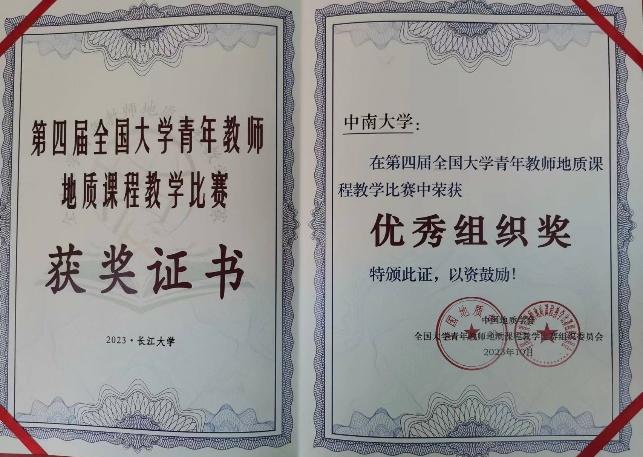 通过此次教学竞赛试讲暨课程思政教学经验交流活动,地质资源系青年教师进一步明确教师育人职责。地质资源系此次派出的张宇和曹勇华两位参赛教师,均在第四届全国大学青年教师地质课程教学比赛中取得了一等奖的优异成绩(图2)。祥赌必赢