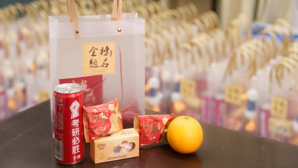 活动第一部分:奋斗到底,永不“研”弃。活动现场,每位同学都获得了一份专属考研加油包,加油包在手,每位学子必将心想事“橙”、好事“花生”、“巧”过难关、万事“可乐”、加油冲“鸭”、金榜题名!