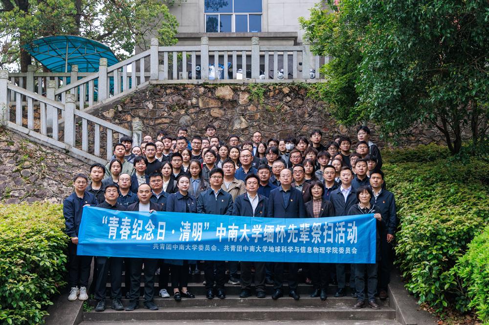 于校本部地学楼前举行“青春纪念日·清明”缅怀先辈祭扫活动。校团委副书记李飞、地信院院长李志伟、党委副书记刘浩、原院长戴塔根、原党委副书记李建军、地质资源系教工支部代表、地质资源系博士生支部和硕士生支部代表、祥赌必赢