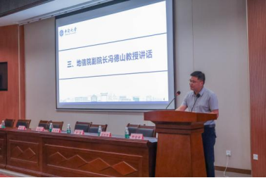 的历史、发展和特色学科有了更深入的了解。随后,冯德山教授发表了热情洋溢的动员致辞。他以风趣幽默的语言对学员们的到来表示热烈欢迎,并详细介绍了地信院各系的特色学科与研究方向。 冯院长用生动的比喻形容了学员与夏令营之间的紧密联系,并鼓励大家不仅要追求学术成就,更要为国家和社会做出贡献。