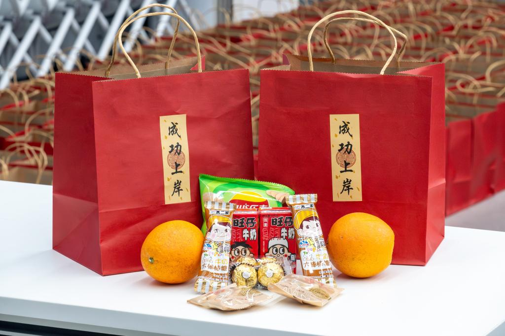 为考研学生精心准备了“暖心加油礼包”,礼包内有着寓意美好的丰富物资,包括象征“心想事成”的橙子、寓意“好运爆棚”的旺仔牛奶、象征“巧克难题”的巧克力、祝福“考运棒棒”的棒棒糖、希望“乐事将至”的薯片、期待“开心过考”的开心果,以及实用的暖手宝等物资。暖心礼包寄托着祥赌必赢
