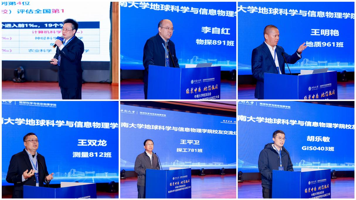 成立大会结束后,校友交流环节随即开启。学院院长李志伟汇报学院发展现状与未来规划。物探891李自红、地质961王明艳、测量812王双龙、探工781王平卫、地理信息系0403胡乐敏等校友代表依次登台,分享求学时光的难忘记忆、职场奋斗的宝贵历程与人生感悟,真挚的话语催人奋进,引发全场共鸣。