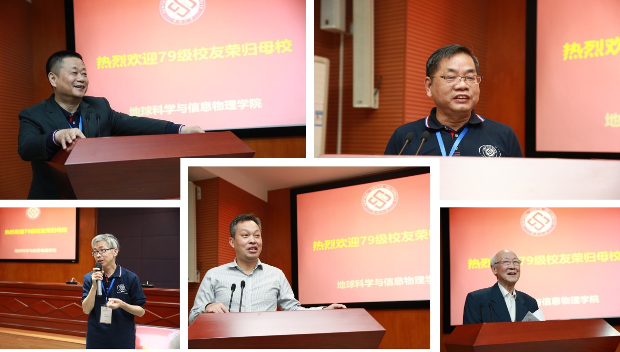 七九级校友返校纪念大会隆重举行,校长田红旗致辞,对七九级校友的归来,表达了最热烈的欢迎。实现了南海北部深水区油气勘探零的突破的地质791班的施和生校友,代表地质系同学上台发言,他半认真半开玩笑的给学校提建议,学校招生一定要男女搭配,再不要出现他们那样的和尚班了,大学不仅是学习知识的阶段,也是人格养成时期,需要学会如何和异性相处,班上一个女生都没有,是不是有点太残忍。喻春光则与三一集团总裁唐修国等校友一起在台上坐而论道,回忆起当年在学校的种种美好往事。