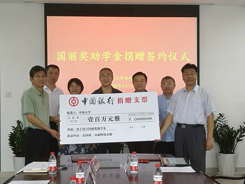 (中南工业大学前身),只不过一个考入的是当时学校最小的系——社科系,而另一个考入的是当时学校最大的系——地质系。曾教授深情地回忆了他们当年在学校艰苦而又充实的学生生活,并代表高国秋、高丽辉夫妇对母校的培养表示感谢,希望借此捐赠帮助贫困学生、鼓励优秀学生。