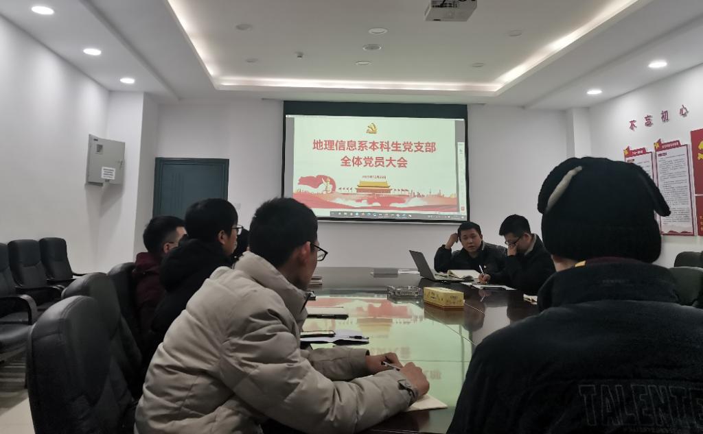 2021年12月28日晚上21:00,地理信息系本科生支部于地科楼214召开了地理信息系本科生党支部大会。本次会议由强俊同志主持,支部全体同志出席本次会议。