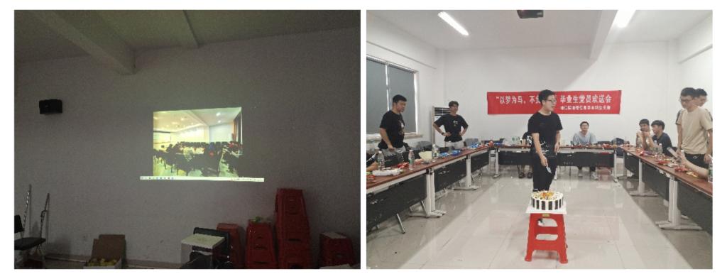 游戏环节结束,大家一同观看纪念视频,分享纪念蛋糕并为毕业生党员赠送纪念品,为获胜小组颁发奖品。