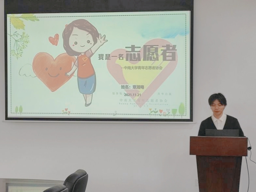 青志协、院新媒体新闻部副部长。致力于公益事业,她前往丹霞山进行科普志愿者的学习,在湘江风光带调查“鸟撞”项目,参加中国团餐学会的“光盘行动”,热心于奉献和服务,她报名迎新志愿者、疫苗接种志愿者,参与无偿献血,在中国人体器官捐献志愿者名目下注册。