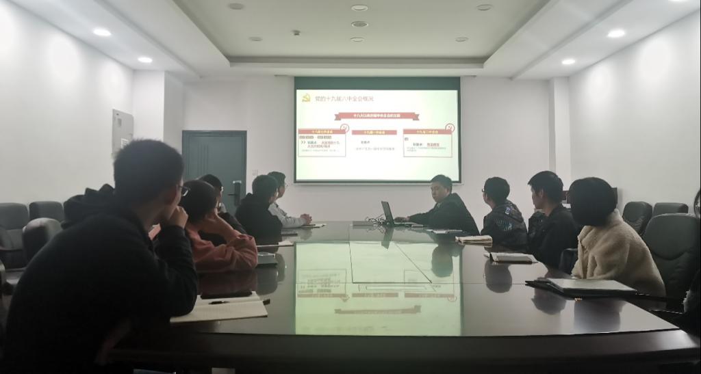 然后,由强俊同志带领支部全体成员学习十九届六中全会精神的相关内容。他指出:2021年极具特殊重要性,是"十四五"开局之年、现代化新征程开启之年,更是中国共产党成立第100周年,党的十九届六中全会在这个重要的历史时刻召开,是我们在向第二个百年奋斗目标迈进的重大历史关头召开的一次具有开创性、里程碑意义的重大历史性会议。也因此,支部对于该会议的学习十分注重。他还强调,一定要认真学习贯彻精神。把学习贯彻党的十九届六中全会精神作为当前和今后一个时期重要任务,深刻认识党的百年奋斗的初心使命和历史经验。