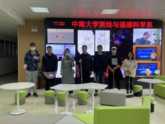 随后,全体发展对象以小组为单位,前往各自负责的区域进行卫生维护。小组成员们彼此间分工合作、井然有序,对各个教室、师生交互区、实验室的桌椅进行全面擦拭,对各楼层走廊的垃圾进行清理,以高效的行动能力,充分展现了地信院第13期发展对象良好的精神风貌。大家以劳动为荣,乐在其中,忙碌的身影成为了地科楼一道亮丽的风景线。各组工作完成后,全体成员进行合影留恋,以记录充实且有意义的志愿时光。