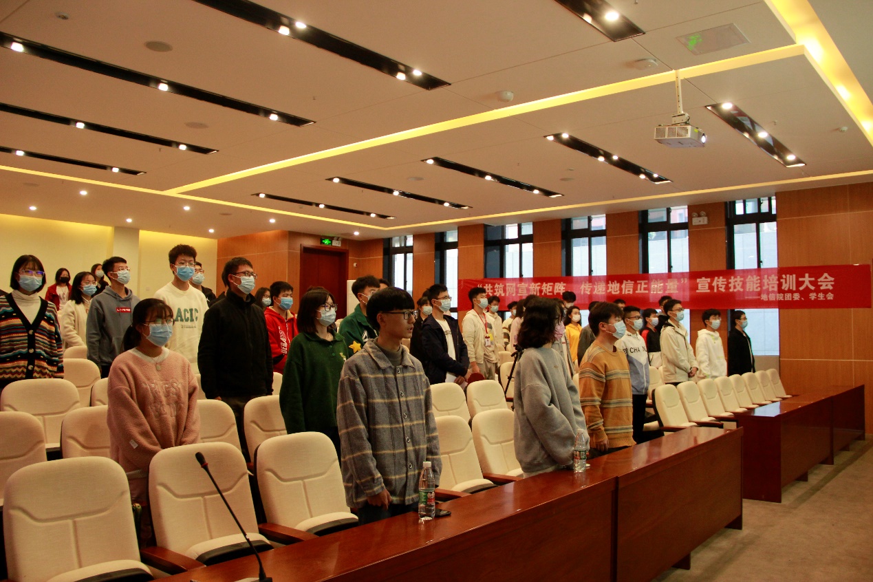 大会在庄严的国歌声中拉开序幕。随后,王泽润同学讲解推送CSS排版及一图流排版。在讲解过程中,王泽润同学从排版常用软件、配图配色、文案排版、符号及细节等方面为大家进行了详细的介绍,让大家对一篇美观的推送的产生有了形象的理解和深刻的认识。在王泽润同学进行了实用丰富的讲解后,吴兆桐同学进行了新闻稿书写的分享。她首先讲解了新闻稿常见的四大类型,随后从格式、标题到开头、正文、结尾向同学们详细地介绍了如何写好一篇新闻稿,最后分享了新闻稿的常见错误要点及重要信息。最后孟令闯同学为大家介绍了地信院全团宣传思想文化工作的正确做法、地信院团委学生会接收投稿的类型与要求及团支部风采展示渠道。