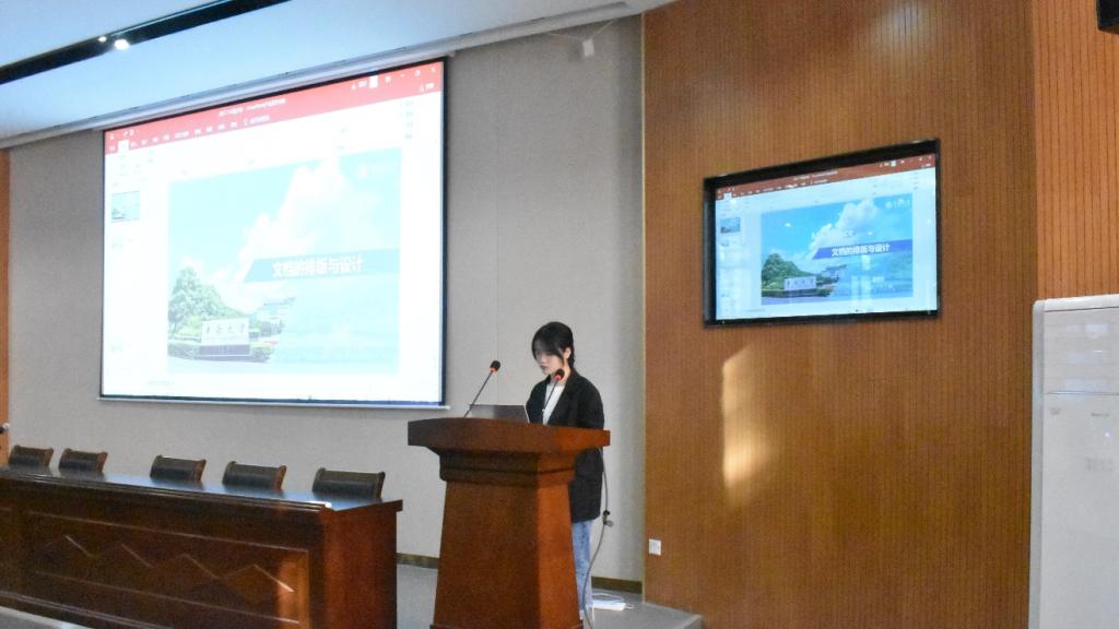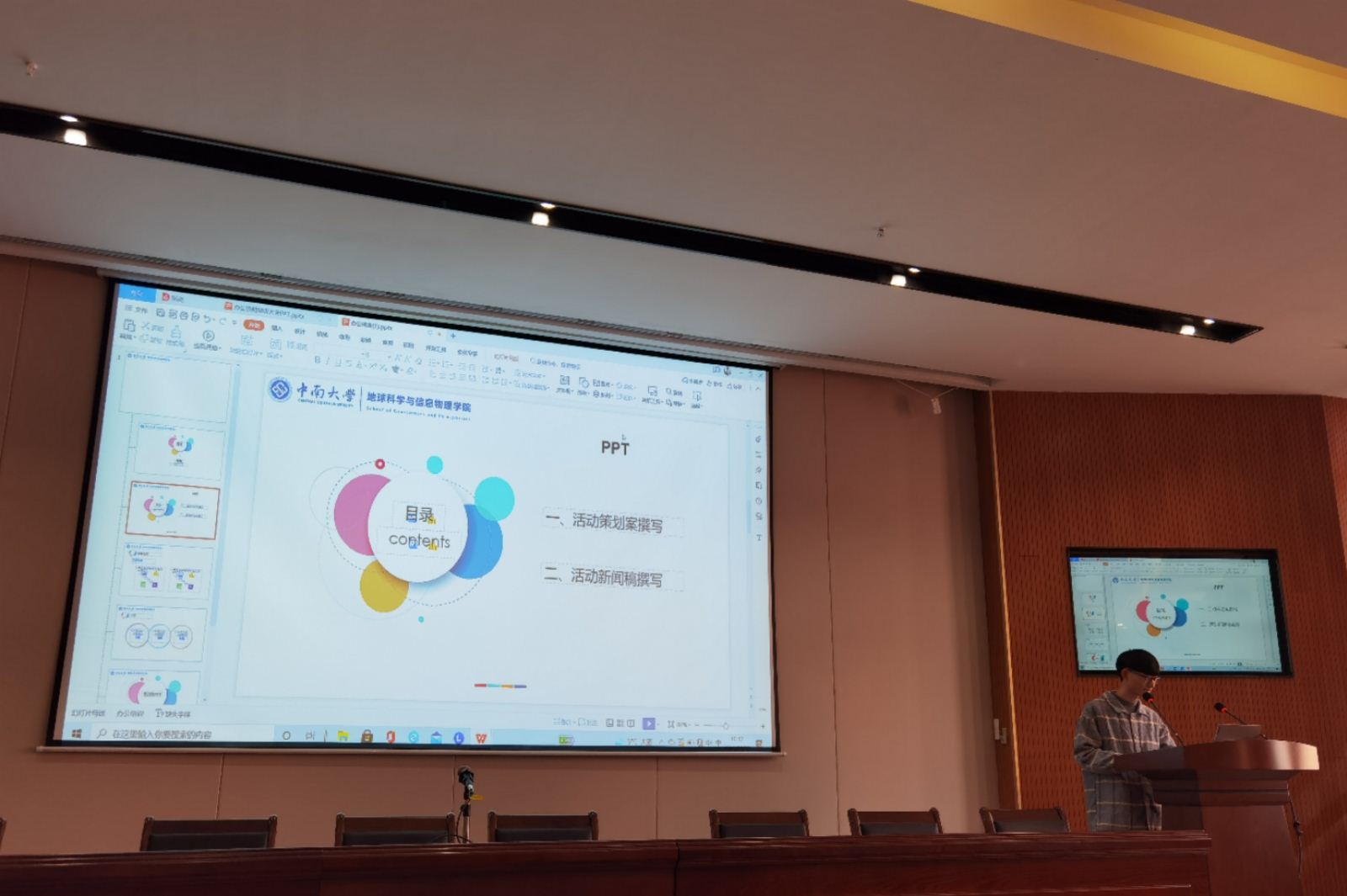 学工部综合办公室助理负责人夏熙珍同学向大家讲解公文排版和表格制作,并分享其工作经验,总结了工作所需要具备的四个意识,让同学们印象深刻。接着,地信院团委宣传部部长孟令闯同学向大家讲解PPT制作及文案撰写。最后,主持人致闭幕词,线下全体参会成员合影留念,办公技能培训大会圆满结束。