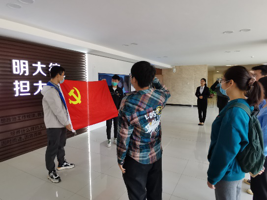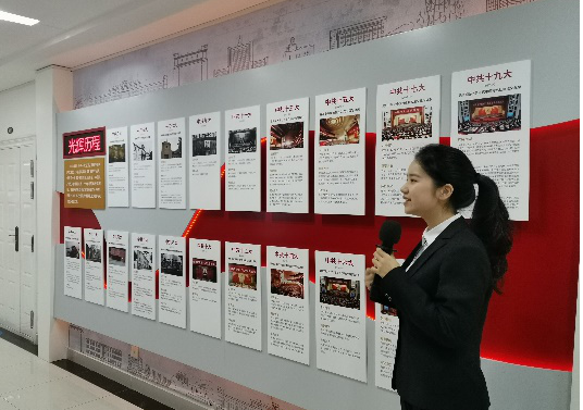在课堂上,全体同志跟随主持人的步伐,在毓秀楼的党史陈列走廊领阅中国共产党的百年艰辛历程。党史体验课以“中国共产党百年征程”为主题,分为党课聆听、情景互动和重温誓言三个环节,整个过程既有党史讲解,又有情景互动。