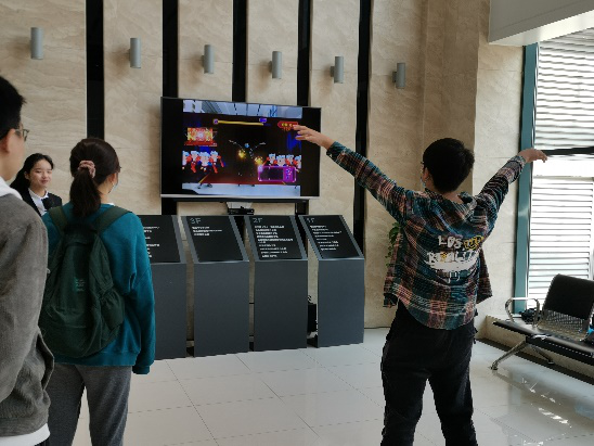 在情景互动中,主持人通过AR技术,生动立体地向我们展现了“半条被子”故事发生地——郴州市汝城县文明瑶族乡沙洲瑶族村的人文风貌。互动中我们清晰地看到村子里的专题陈列馆,它向世人诉说着半条被子的感人故事。随后进行红色文化舞蹈互动环节,支部同志欢快地跟随AR屏幕跳起秧歌舞,共同感受中国北方极具群众性和代表性的民间舞蹈的魅力。