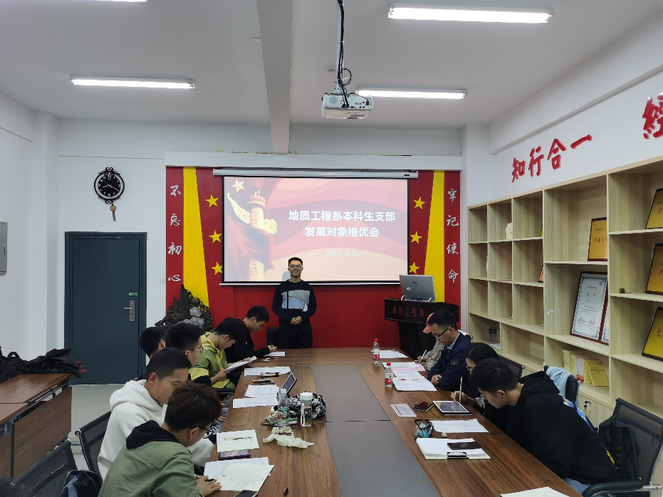 10月10日晚上19:00,地质工程系本科生支部第13期发展对象推优会在新校区地科楼112召开,支部书记杨通田、支部全体在校成员以及来自18、19级共14名入党积极分子参加本次推优会。