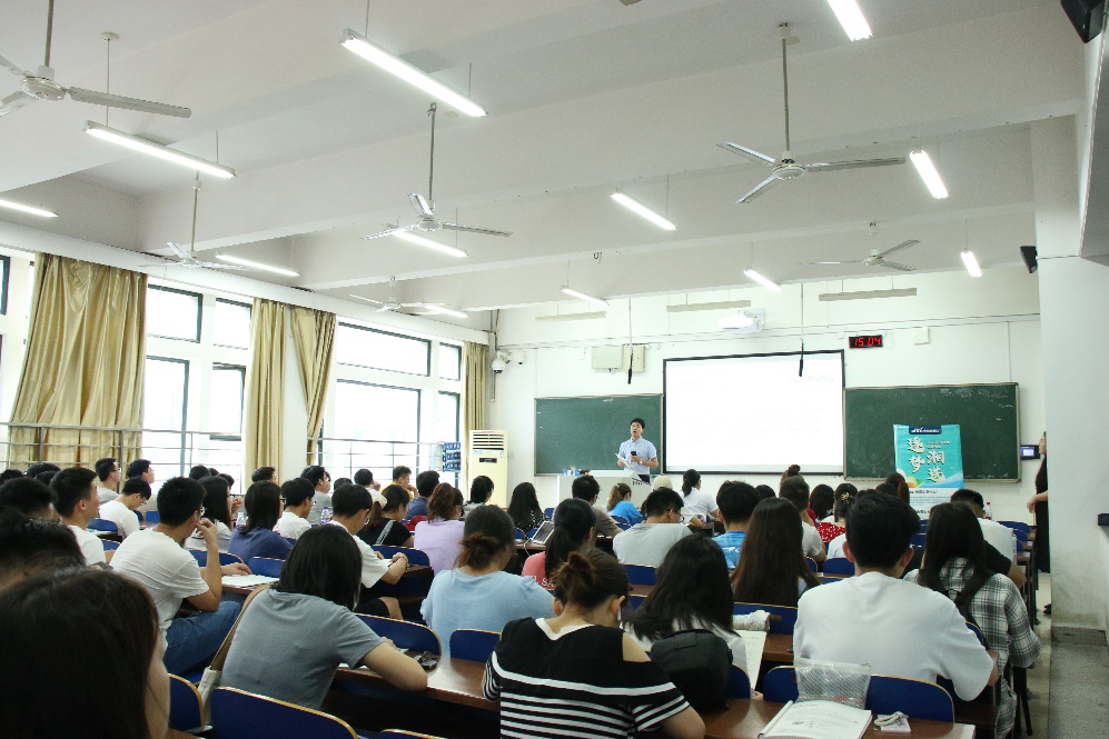 讲座开始,彭老师就选调生的定义、薪资待遇、岗位待遇、历年的报考情况、报考要求及考试内容和时间等内容展开讲解。她强调,备考需要提前谋划才能事半功倍,并以历年的考试内容为例向同学们传授了许多经验。接着彭老师重点讲述了广东省的选调生情况,为不符合湖南省条件的同学们提供了新的思路,也将其他省份的情况进行了展示。随后,彭老师根据历年来的多种考题类型,着重讲解申论备考的注意事项。讲座最后,中公教育的老师对此次讲座进行了深度总结,其后进行现场答疑。老师的讲解深入浅出,丰富细腻,在场的同学都收获颇丰。