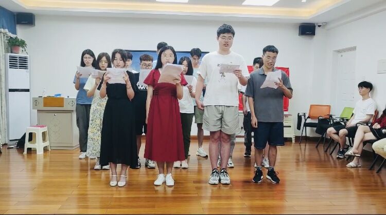 会议第四项,由支部低年级同志为17级毕业生党员们表演了诗朗诵《别说再见,我已开始想念》和合唱《送别》,以此来表达对17级毕业生党员们的不舍和祝福。
