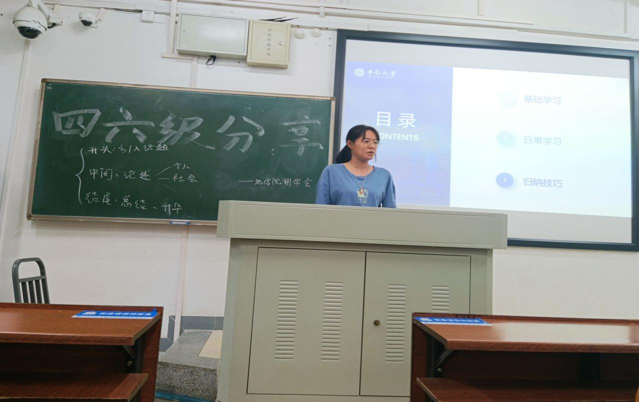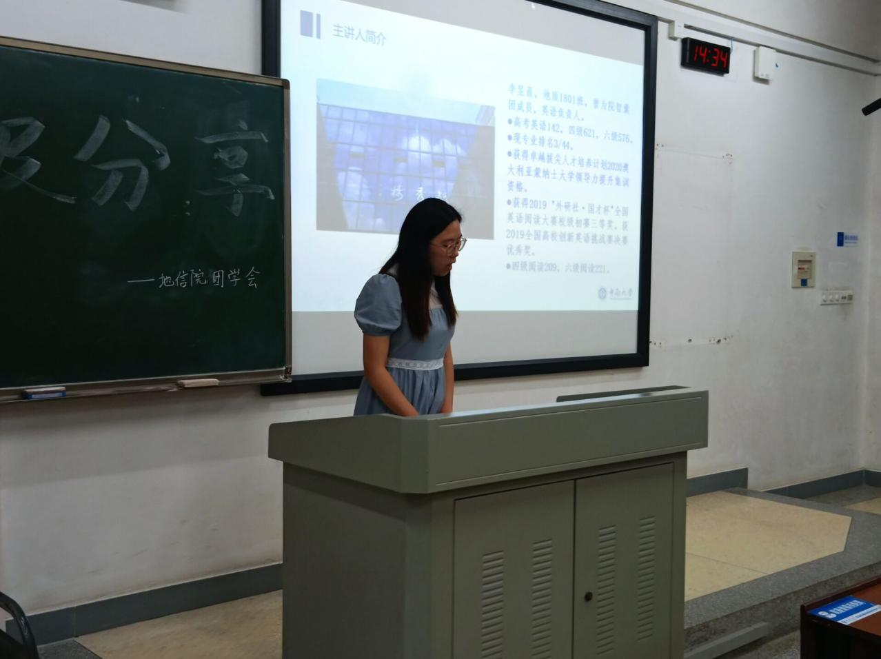 地信院团委、学生会主办的“极地漫谈”益友系列之“四级六级,有我别急”四六级经验分享会于新校区A座124教室顺利举行。本次活动由院学生会学习部主办,地信类2001班吴跃达同学主持,地质1801班李昱熹同学、测绘1903班徐蕾同学、地信类2001班黄悠南同学主讲。