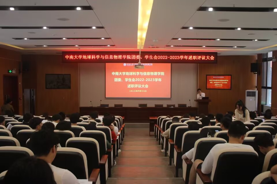 团委、学生会2022-2023学年度述职评议大会在地科楼127报告厅召开。地信院团委书记刘琦老师出席会议,67名学生代表及各部门代表参会,会议由韩世博同学主持。