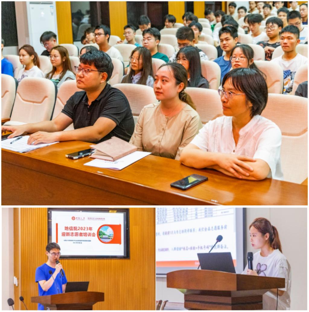为确保地信院2023年迎新工作顺利进行,2023年地信院迎新志愿者培训会于9月6日在地科楼127召开。会议由院团委学生会主席崔红岩同学主持,院党委副书记李建军老师、院团委书记刘琦老师、院2023级辅导员赵乐老师及全体志愿者参会。
