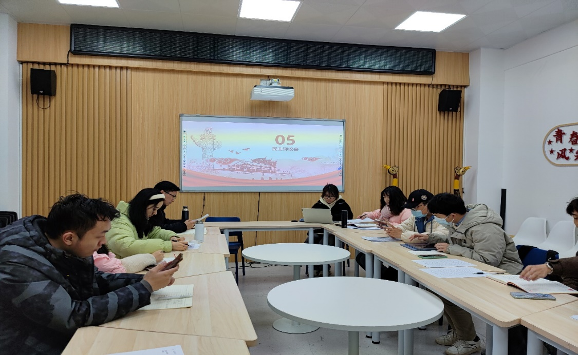 首先,由支部组织委员肖可凡同志进行应到参会人员点名,然后,支部各党小组组长分别汇报本月的学习情况。接着,由李晓楠同志主持开展二月份集体学习。学习内容为集中学习电视专题片《平“语”近人——习近平喜欢的典故》第三季第1集:江山就是人民。视频学习之后,各党小组分享收获感悟,同志们表示作为大学生党员要学习全心全意为人民服务的精神,践行“江山就是人民,人民就是江山”的理念。接下来,支部书记杨通田同志进行支部2023年度工作总结,杨通田同志总结了支部组织体系建设的总体情况,提出了支部工作存在的问题与整改措施,对支部接下来的发展工作进一步部署并表达了自己的期望。