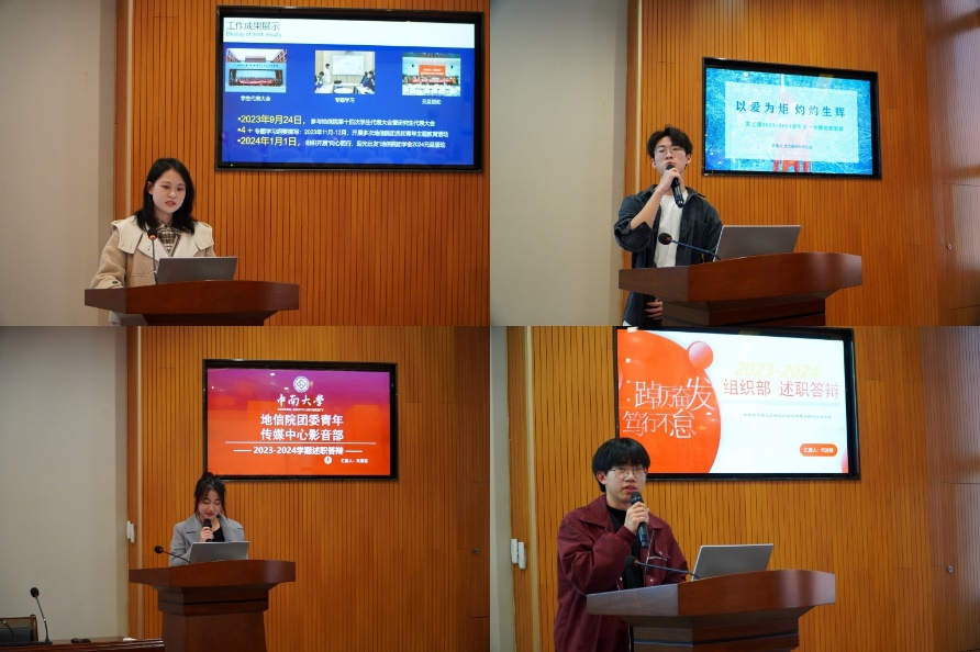 团委、学生会2023-2024学年第一学期述职大会于地科楼127顺利举行。院团委书记刘琦老师,院团委及学生会部门代表、各班学生代表出席本次会议。会议由崔红岩同学主持。