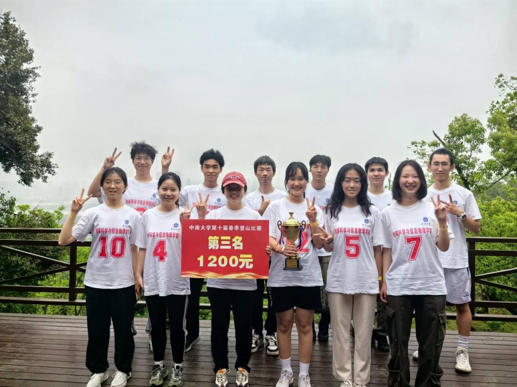 早上7:40,登山队队员们在和平楼前坪集合,开始进行热身活动。8:30,比赛正式开始,队员们沿着比赛规定路线向终点进发。比赛途中,队员们团结协作,互相鼓励,克服了沿途的陡峭山坡、湿滑路面和天气潮湿等困难。经过全体队员的奋力拼搏,地信院登山队最终以17分45秒的成绩荣获第三名!