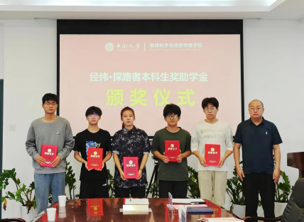 2024年5月8日下午,地信院2023年度“经纬-探路者”本科生奖助学金颁奖座谈会在地科楼214顺利举行。院党委副书记刘浩老师、测绘与遥感科学系教工党支部书记汤玉奇老师、学工办副主任胡幽老师以及获奖学生出席本次活动。何可沁老师主持活动。