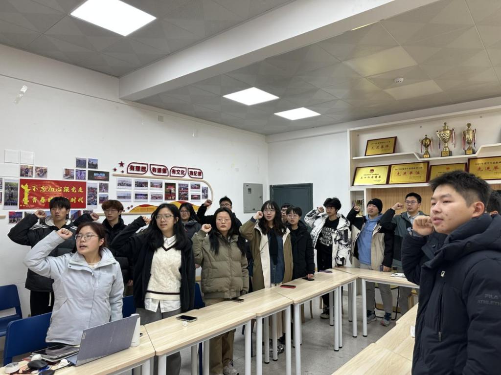 会议最后,蔡启静同学带领团支部成员重温入团誓词,并对团支部工作进行总结与展望。