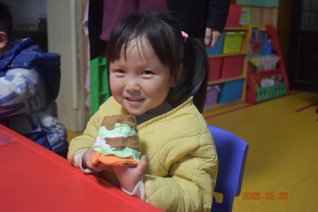 活动还特别设置了利用橡皮泥制作火山模型环节。在志愿者们的帮助下,孩子们用橡皮泥亲手搭建火山模型。伴随着孩子们的欢声笑语,一座座迷你火山拔地起。这一环节让孩子们对火山的结构有了更进一步的认识。