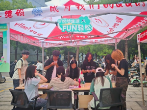 朋辈心理互助会于5月21日在麓南校区二食堂前坪举办了“手作拾光,温暖同行”积极心理体验营活动。本次活动将心理调节融入创意手工和趣味游戏中,吸引了众多同学踊跃参与,活动现场秩序井然、气氛热烈。