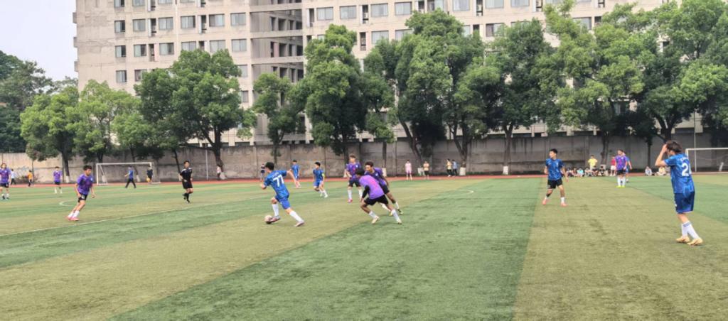 比赛于5月24日下午三点正式拉开帷幕。随着裁判的一声哨响,双方球员迅速进入状态,展开了激烈的对抗。上半场,地信院与马院你来我往,互有攻守,场下的观众们情绪高涨,加油助威声此起彼伏。在一次精彩的进攻配合中,我院队员凭借出色的个人技术和默契的团队协作,成功打入一球,将现场氛围推向了高潮。上半场结束时,双方战成1:1平。