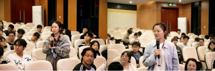 在问答环节中,到会同学积极就关心问题与嘉宾展开深入交流。就感兴趣的专业学习、读研选择以及直博与硕博连读之间的区别等问题进行探讨。各位嘉宾结合自身经历,为同学们提供了宝贵建议。