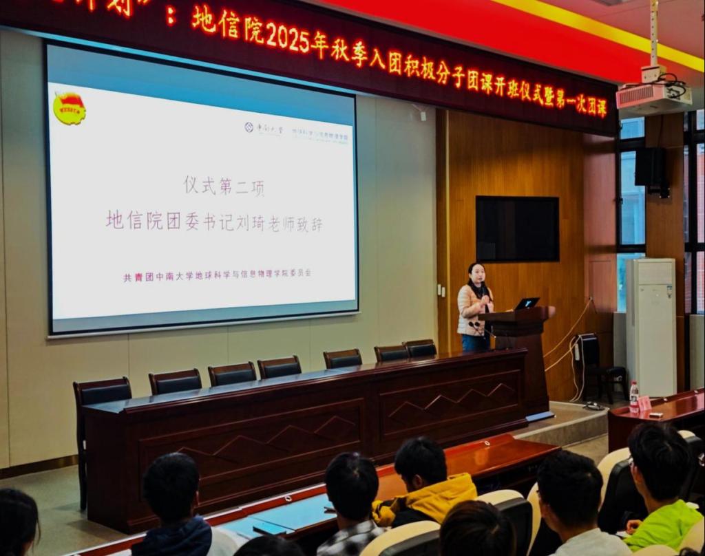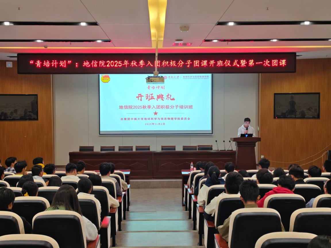 为加强对青年学生的思想政治引领,壮大团员队伍后备力量,2025112日,地信院团委组织部在潇湘校区地球科学楼127室组织召开2025年秋季入团积极分子开班典礼暨第一次团课。院团委书记刘琦老师莅临指导,院团委组织部全体成员与全体2025年秋季学期入团积极分子参加此次典礼。