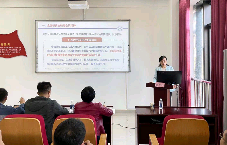 朱学红副校长分别从全国研究生教育会议精神、国家研究生教育改革全面启动、学校贯彻落实会议精神整体安排和学校研究生教育现状与改革举措这四个方面进行了讲授。朱学红副校长首先传达了习近平总书记对研究生教育工作作出的重要指示精神和李克强总理的批示精神,以及孙春兰副总理和陈宝生部长在全国研究生教育会议上的讲话。随后,她详细讲解了学校贯彻落实会议精神整体安排以及学校研究生教育现状与改革举措,着重突出我校“54321”研究生教育体系中“提升研究生创新能力”与“提升研究生国际化水平”这两个重点,号召各位研究生与学校共同实现“规模结构适应需求、培养模式凸显特色、整体质量不断提升、拔尖创新人才不断涌现”的目标。此外,朱学红副校长还勉励各位研究生,不仅要着眼于自己的学术研究领域,同时也要关注国家“十四五”规划《建议》,将自己的研究工作与国家的重大需求相结合,努力成为德才兼备的高层次人才,为国家建设做出自己应有的贡献,实现自身的人生价值与理想。