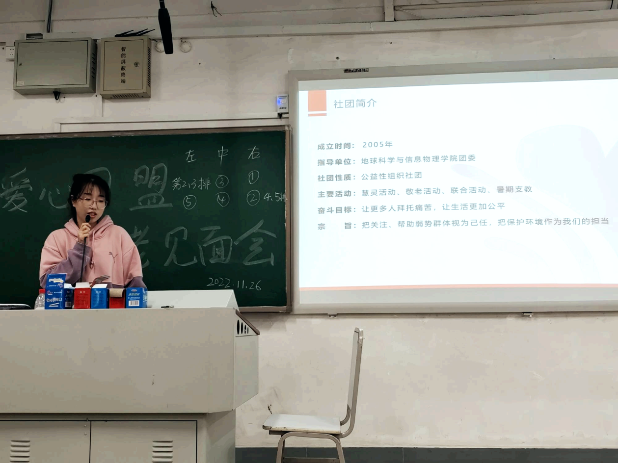 新校区A117教室进行了线下新老社员见面会,本次见面会由副会长王冰组织,主题为“拥有爱心让我们相遇,践行公益使你我成长”,并且邀请了各级段全部新成员与部分老成员参与。