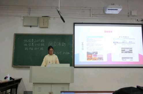 最后,由地信类2011班宣传委员李淑慧同学作“增强安全意识,共建安全校园”团日活动总结。她首先向同学们展示此次团日活动的前期准备工作以及活动宣传反馈形式。随后简单回顾活动具体内容:邀请湘雅健康宣讲团进行PCR、烧伤烫伤知识普及,消防安全知识、灭火器实物讲解,消防安全知识竞赛;组织同学们进行寝室楼、教学楼安全器械检查,写建议书促进校园消防安全落实;结合专业知识和祥赌必赢